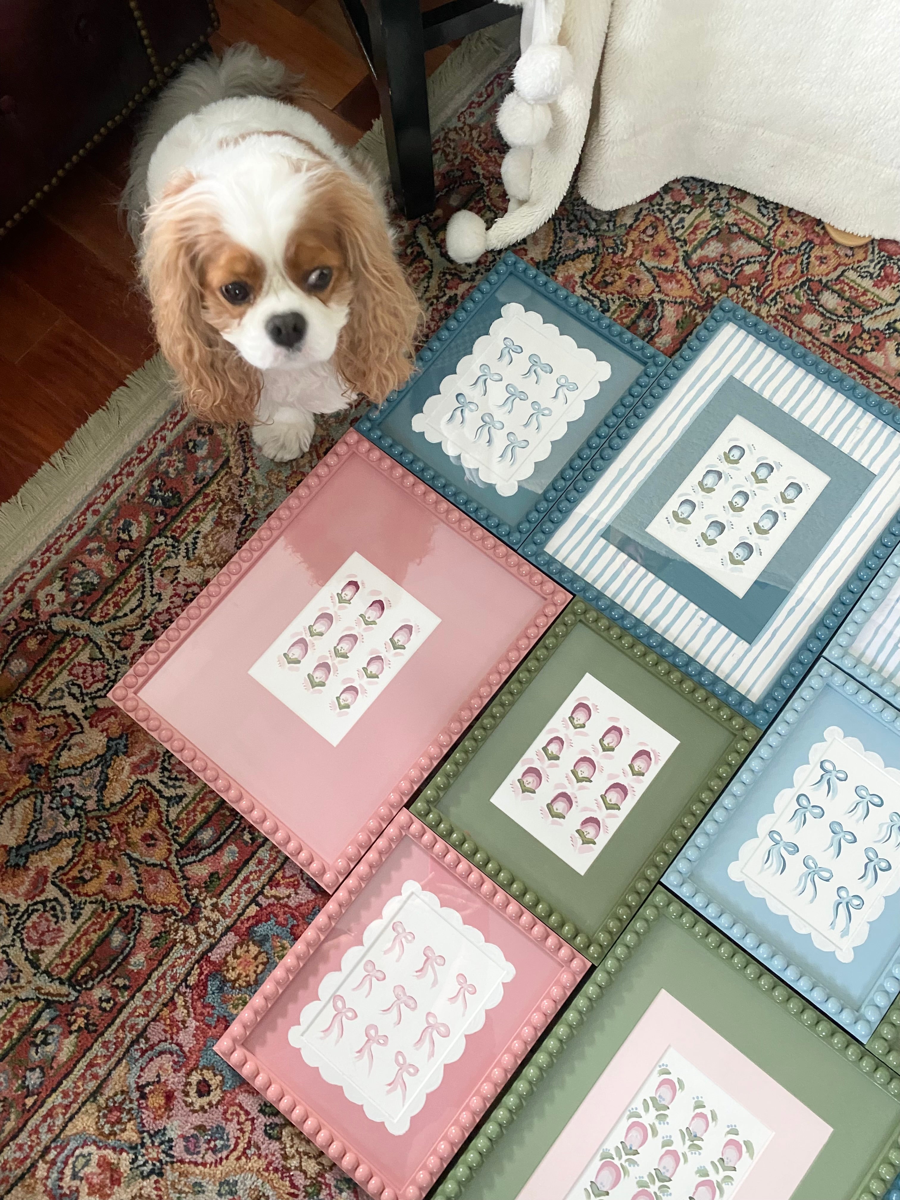 Hand-made Bobbin Frames with painted Mat Boards & artwork - a simple and easy way to add a pop of playfulness and pattern to your space!