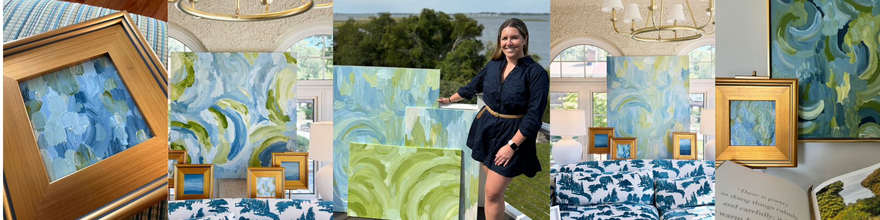 “I commissioned Victoria to create several custom pieces to place throughout my family’s first home. I receive compliments on all the pieces, but especially the custom painted bobbin frames! Not only are the pieces beautiful, but I needed some guidance in choosing the correct size/colors of artwork. Victoria’s interior design background allowed me to feel confident that I was investing and choosing the perfect pieces for the space. She was so patient with me and a joy to work with. I look forward to gifting several Victoria Elizabeth pieces this holiday season.”